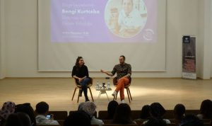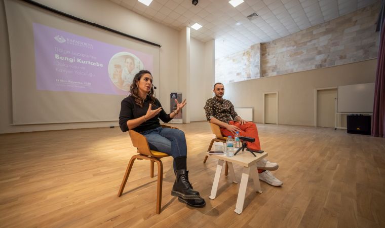 Atölye çalışmaları sonrasında Uçhisar Sanat Yerleşkesi Konferans Salonu’nda Öğr. Gör. Melih İçigen moderatörlüğünde yapılan söyleşide kariyer yolculuğunu anlatan Kurtcebe, öğrencilerimizden gelen soruları cevapladı.