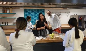 Uçhisar Sanat Yerleşkesi uygulama mutfaklarında yapılan atölye çalışmalarında pastacılığın bilimsel esasları hakkında bilgilerini öğrencilerimizle paylaşan Kurtcebe, mutfaklarda malzeme kullanımı, ısı ve fırın kontrolü, çırpma, emülsifiye etmenin püf noktalarını verdikten sonra bölgemizde yetişen ayvalarla üzeri crumble ve bademle kaplı kek yapımını uygulamalı olarak gösterdi.