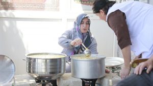 “Aşure Günü” dolayısıyla Cevher Dudayev Mahallesi Şehit Komando Er Cevdet Şimşek Parkı Halı Kilim Dokuma Atölyesi kursiyerleri tarafından hazırlanan aşureler Nevşehirli vatandaşlara ikram edildi.