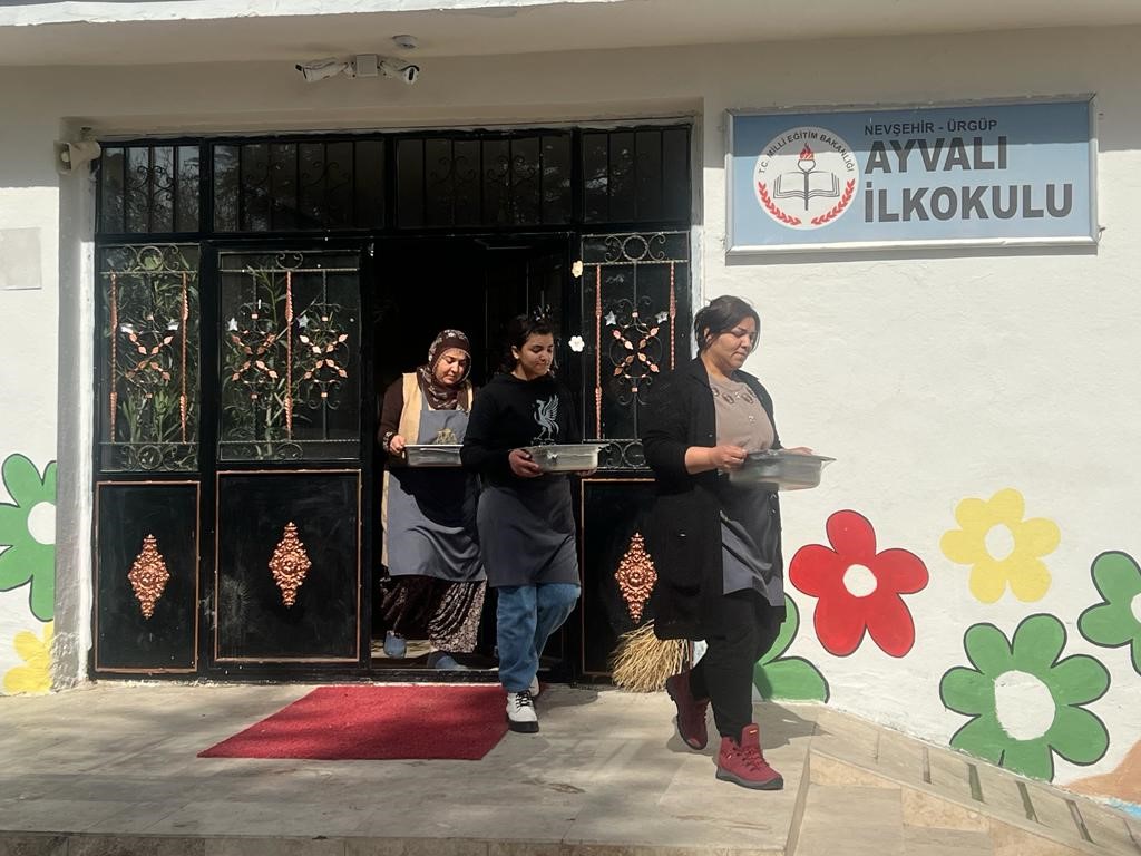 Ayvalı’da bulunan köy yaşam merkezinde, Nevşehir Milli Eğitim Müdürlüğü tarafından açılan aşçı yardımcılığı kursuna katılan köylü kadınlar hem meslek öğreniyor, hem de usta öğretici nezaretinde yaptıkları yemekleri depremzede ailelere dağıtıyor.
