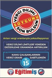 Başkan Demir, “Kamu çalışanlarının bu dilim dilim uygulanan vergi zulmüne tahammülü kalmamıştır. Bu vergi düzeni adil değildir. Hukuka uygun değildir. Devletin, “az kazanandan az, çok kazanandan çok” ilkesini hayata geçirmemesi nedeniyle fatura ücretliye kesilmektedir. Kazancımız sadece ücretlerimizden kesilen SGK, gelir vergisi, damga vergisi, fon kesintilerinin yanı sıra katma değer vergisi, özel tüketim vergisi, özel iletişim vergisi vb. adı altında devlete vergi olarak geri dönmektedir” ifadelerinde bulundu