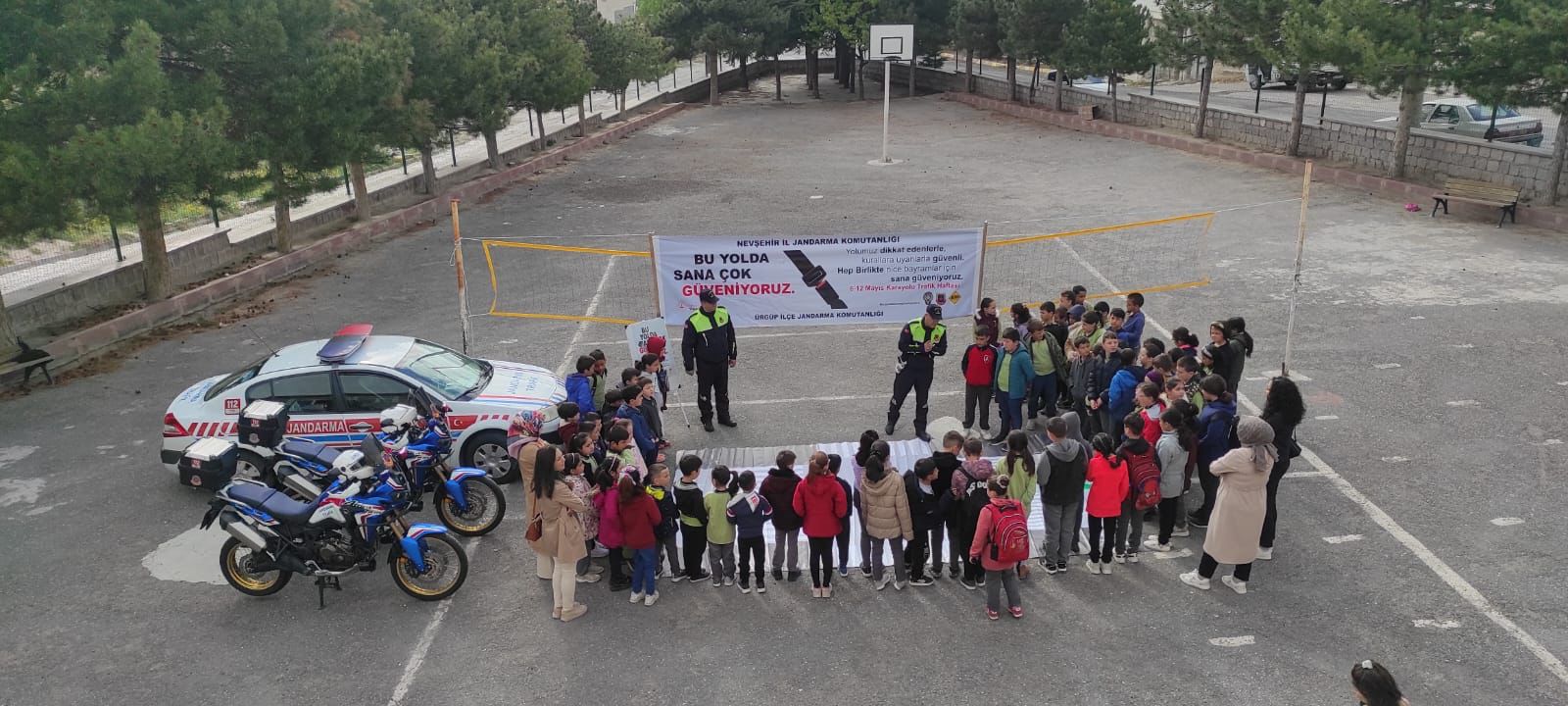 Nevşehir İl Jandarma komutanlığı, Ürgüp İlçe Jandarma Komutanlığı ve Kozaklı İlçe Jandarma Komutanlğı Trafik Jandarması personelince programlar yapıldı. “Trafik Haftası’’ kapsamında “BU YOLDA SANA ÇOK GÜVENİYORUZ” mottosu ile 07 Mayıs 2023 tarihinde Devrant vadisinde trafik standı açılarak yerli ve yabancı turistlere, 08 Mayıs 2023 tarihinde Ürgüp ilçesi Ortahisar Beldesi Fatih ilkokulunda ve Kozaklı ilçesi Çayiçi köyü Yunus Emre İlkokulunda; Trafik haftasının önemi, Trafik Jandarmasının faaliyetleri ve bu yolda sana çok güveniyoruz, yayalar kırmızı çizgimiz, trafikte her yıl daha iyiye mottoları ile ilgili açıklayıcı bilgilendirme, Trafik Jandarmasının kullandığı malzemelerin tanıtımı konularında faaliyet icra edildi.