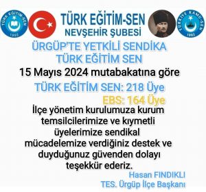 Türk Eğitim Sen Ürgüp’te 218 üye, Ebs 164 üye 54 farkla TES yetkili sendika olmuştur.