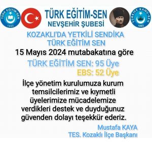 Türk Eğitim Sen Kozaklı’da 95 üye, Ebs 52 üye 43 farkla, TES yetkili sendika olmuştur.
