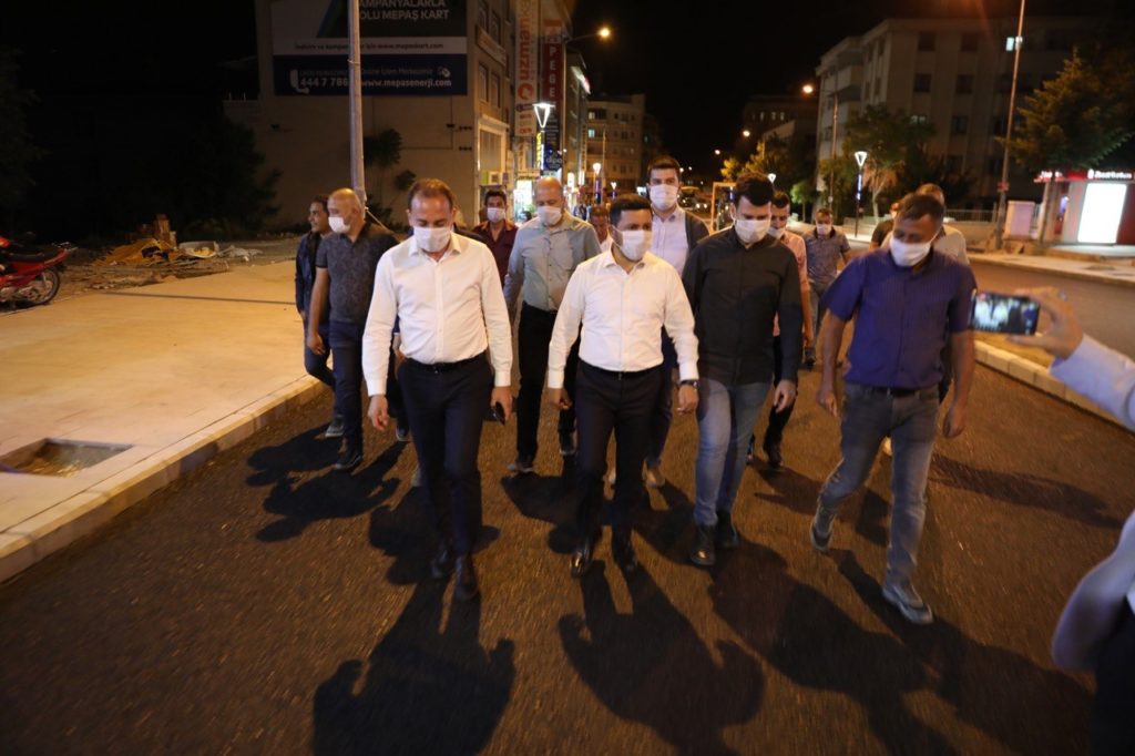 Nevşehir Belediye Başkanı Rasim Arı, belediye ekiplerince kent merkezindeki çeşitli alanlarda aralıksız sürdürülen altyapı, üst yapı ve çevre düzenleme çalışmalarını, gece saatlerinde denetledi.