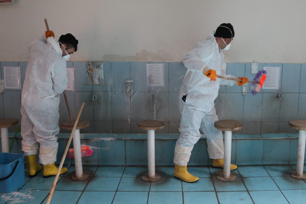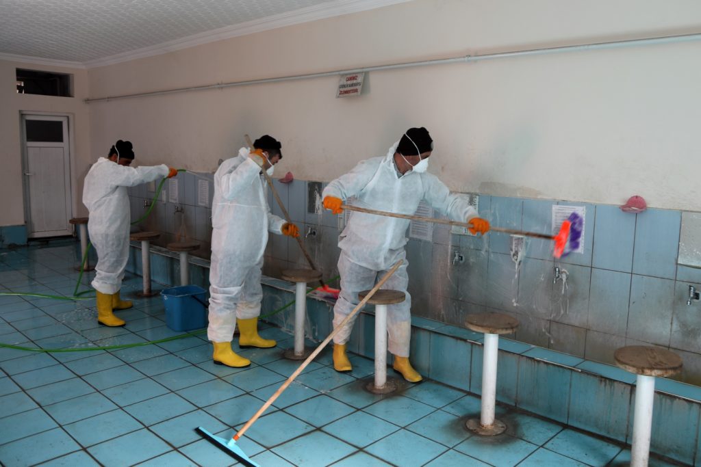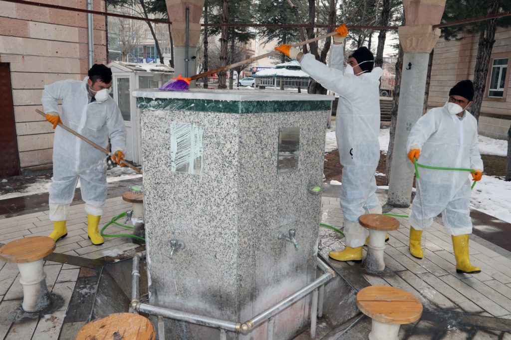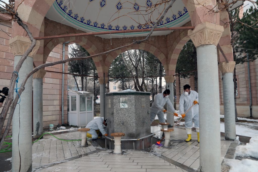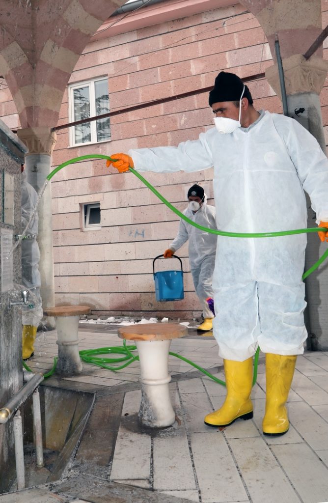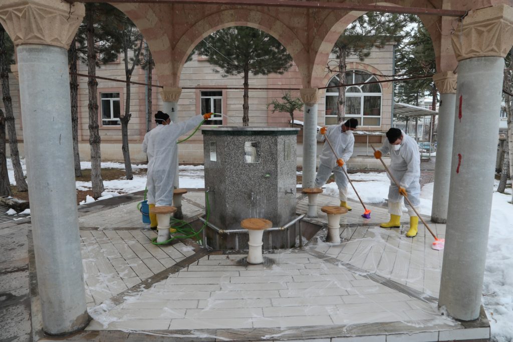 Bu kapsamda, kentin çeşitli mahallelerinde bulunan 68 caminin tuvalet, abdesthane ve şadırvanlarını temizleyen belediye ekipleri ayrıca kullandıkları özel ilaçlarla dezenfeksiyon uygulaması yaparak, kış döneminde ortaya çıkan mikroorganizmalar ve virüslerden kaynaklanan bulaşıcı hastalıklara karşı önlem aldı.
