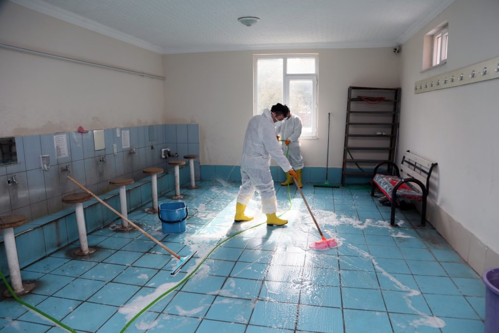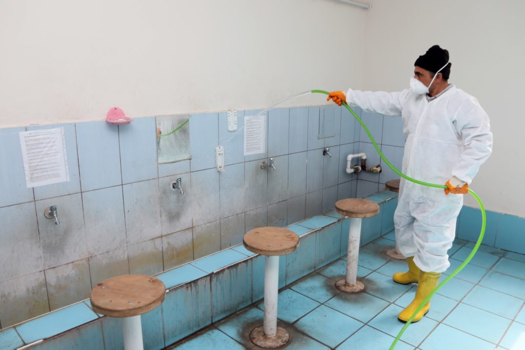 Nevşehir Belediyesi tarafından il merkezinde camilerin; tuvalet, abdesthane ve şadırvanları temizlenerek ilaçlanıyor.