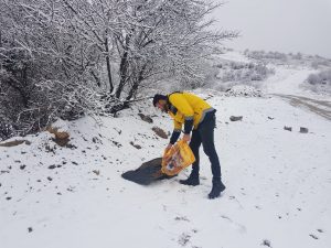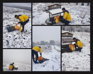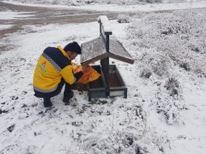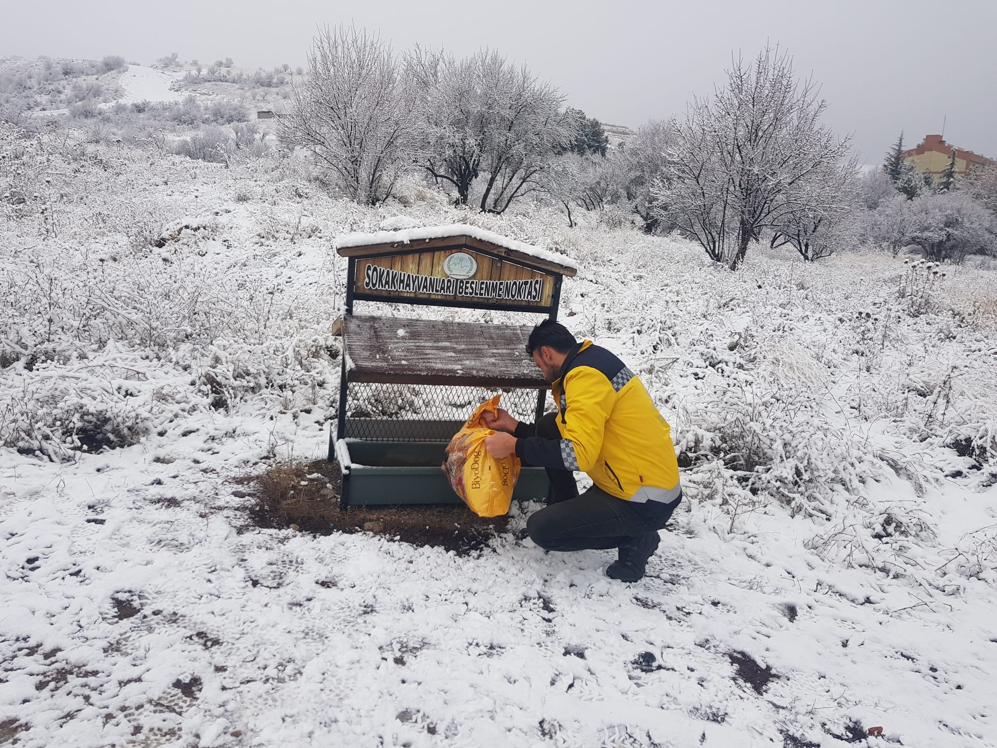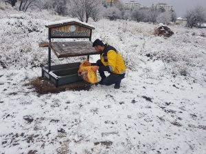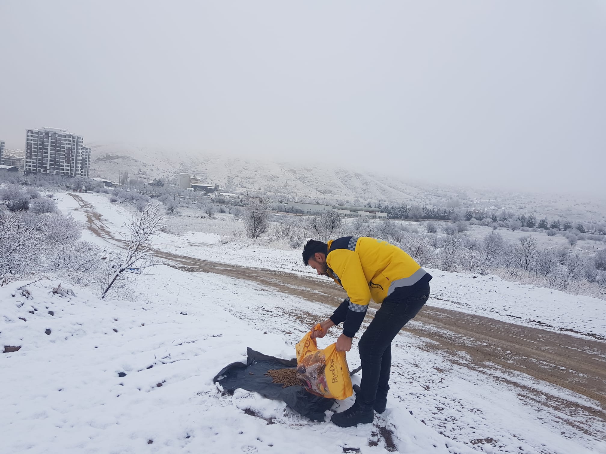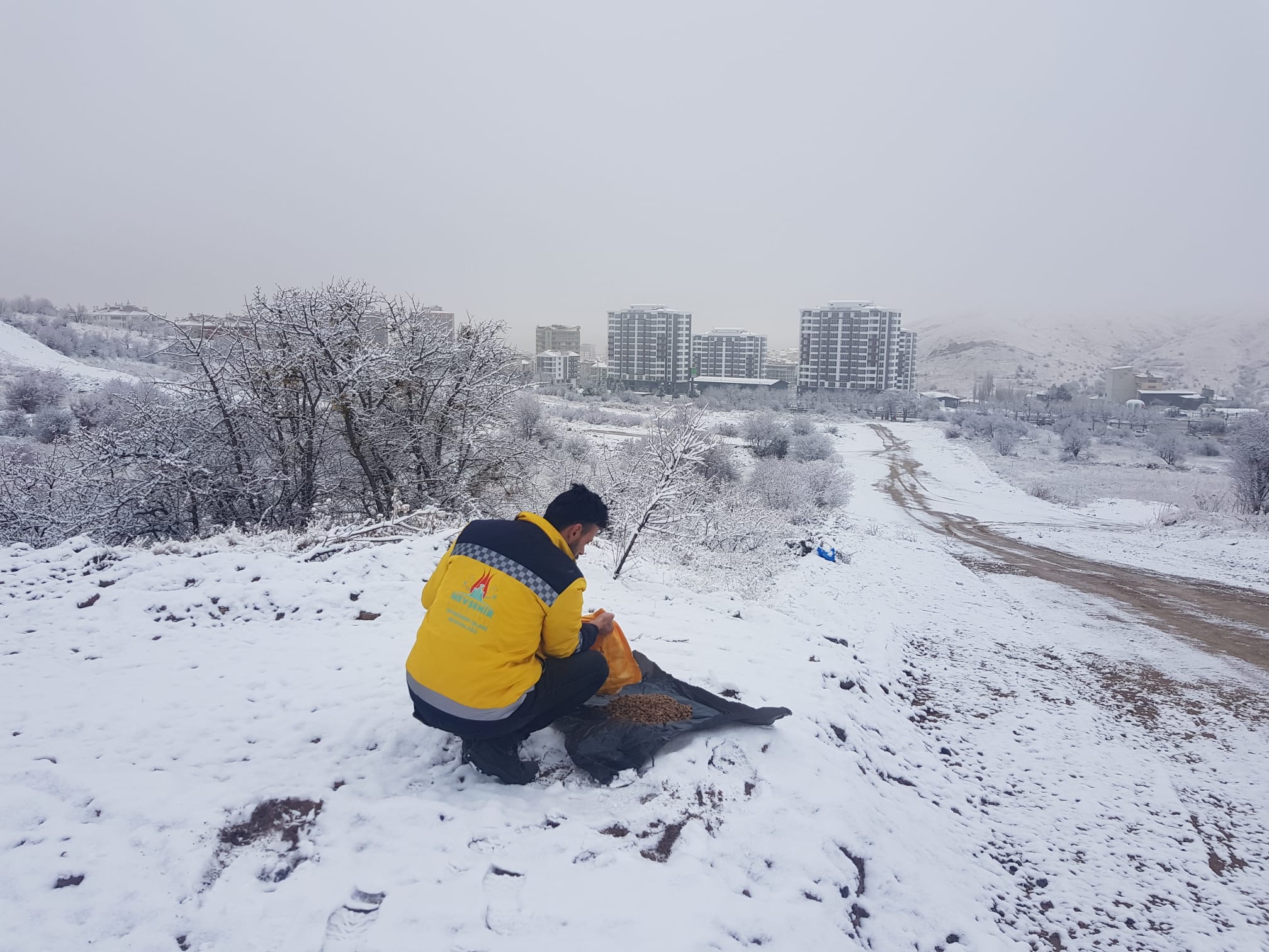 Özellikle soğuk havaların etkisini gösterdiği kış günlerinde sokaktaki sahipsiz kedi ve köpekler için kentin çeşitli noktalarında bulunan besleme odaklarına mama bırakan ekipler soğuk hava ve kar yağışından dolayı yiyecek bulmakta zorlanan kuşlar içinde parklardaki çeşitli noktalara buğday bırakıyor.