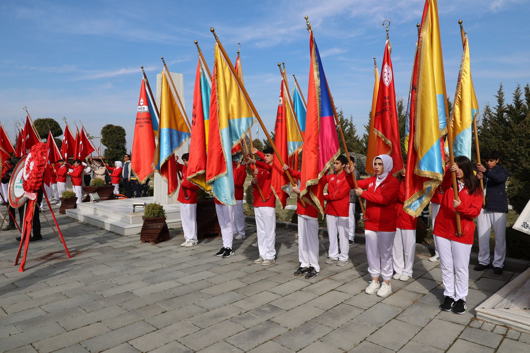 Törenin ardından protokol üyeleri Kaldırım Mezarlığında bulunan şehit kabirlerini ziyaret ederek karanfil bıraktı.