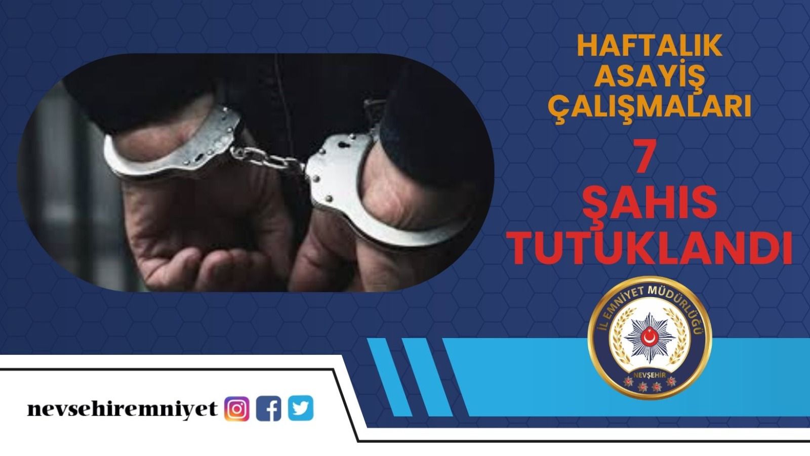 Nevşehir İl Emniyet Müdürlüğü halkın huzuru için çalışmalarını sürdürüyor. Asayiş Şube Müdürlüğü ekiplerince Nevşehir Cumhuriyet Başsavcılığı koordinesinde son bir hafta içerisinde yapılan çalışmalarda;