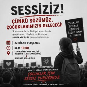 Cumhuriyet Halk Partisi Nevşehir İl Başkanlığı, son dönemde okullarda yaşanan olaylara dikkat çekmek amacıyla 23 Nisan’da “sessiz yürüyüş” düzenleyeceğini duyurdu.