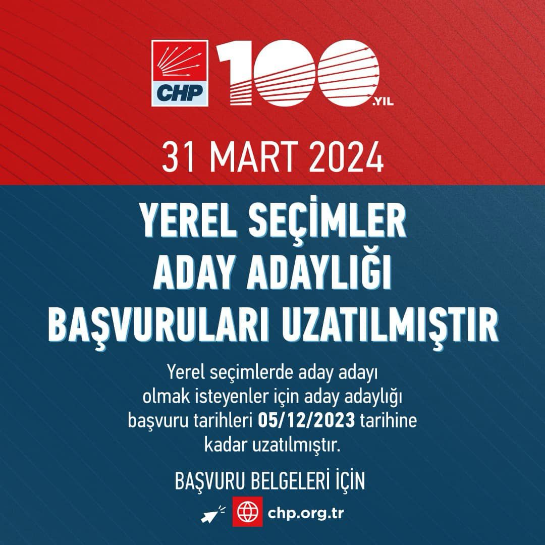 • CHP’de aday adaylığı başvuruları 05 Aralık’ta sona eriyor