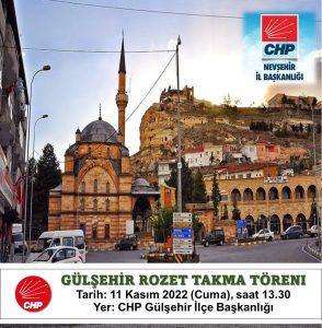 Gülmez, 11 Kasım Cuma günü Saat 13.30 da CHP Gülşehir ilçe başkanlığında ilçede partiye yeni üye olanlara törenle rozetlerinin takılacağını söyledi.