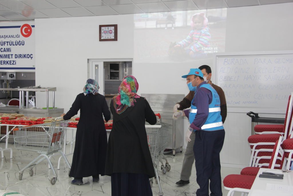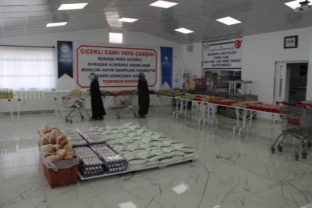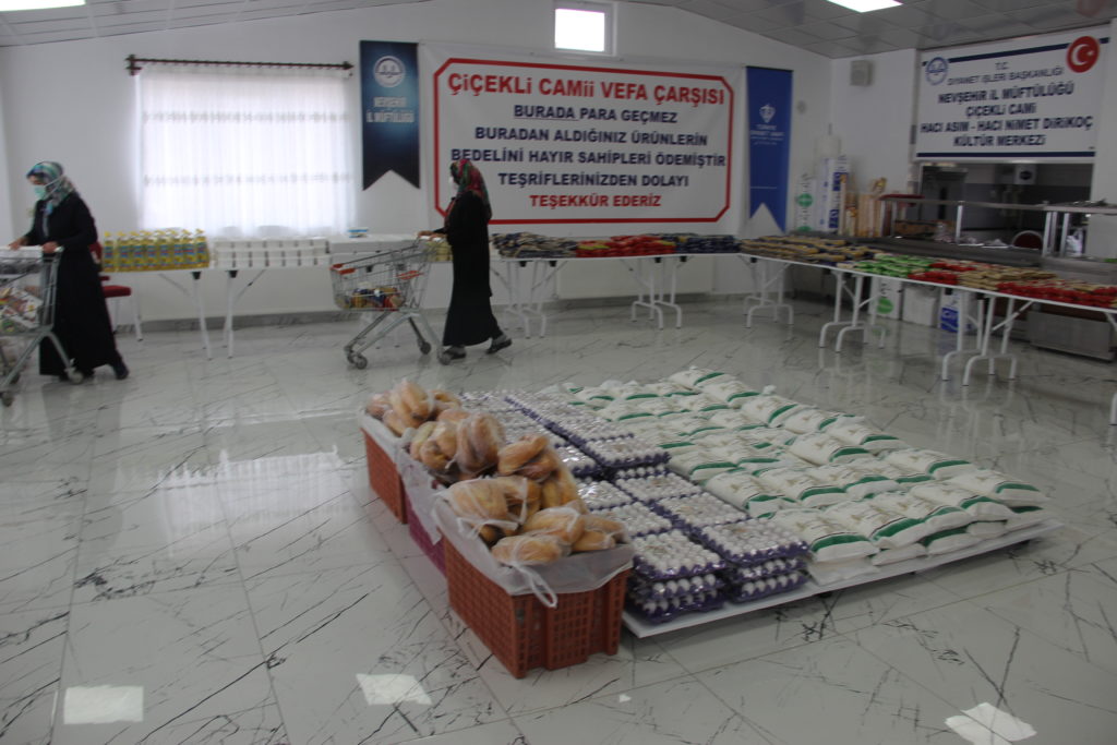 Nevşehir Çiçekli Cami İmam Hatibi Ahmet Aydemir, korona virüs ile mücadele kapsamında camilerin kapatılmasının ardından cami içerisinde bulunan aşevi kısmını vefa çarşısına çevirdi.