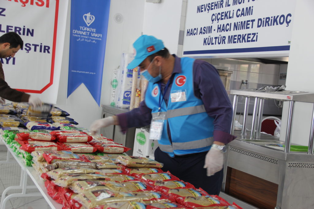 Camide Ramazan sofrasının kurulamayacak olmasının ardından cami imamı Ahmet Aydemir ve beraberindeki imamlar burada aşevi kısmını vefa çarşısına dönüştürdü.