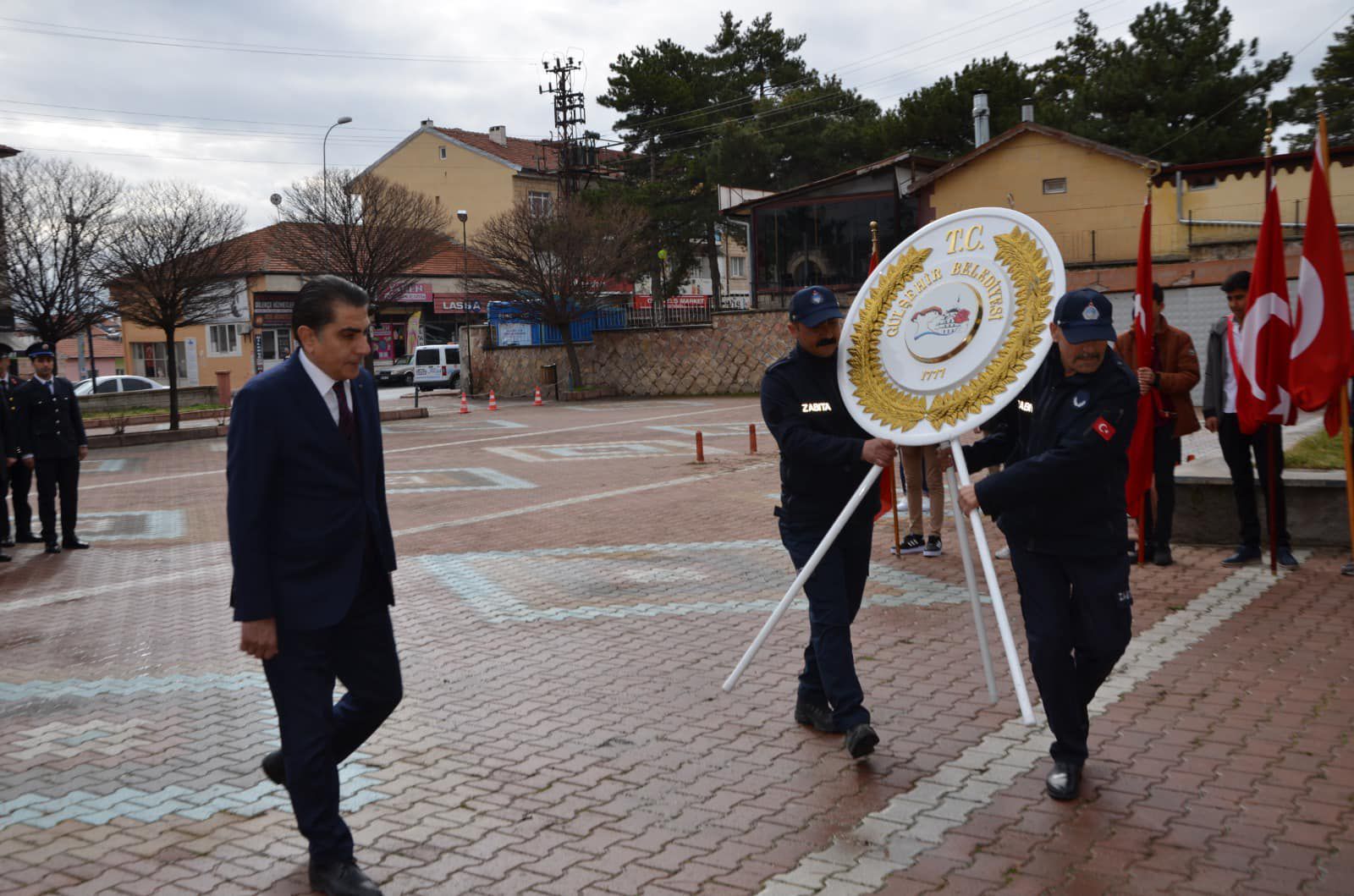 Gülşehir Belediye Başkanı Fatih Çiftçi, 18 Mart Çanakkale Zaferi’nin 108. yıldönümü münasebetiyle Hükümet Konağı önündeki Atatürk Anıtına çelenk sunma törenine katıldı.