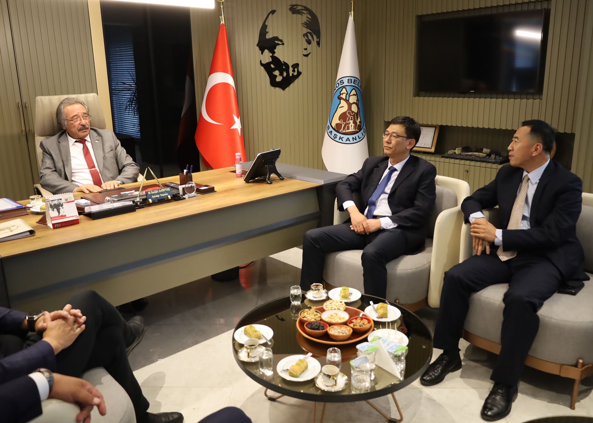 Başkan Sarıtaş, aralarında Ekolojik Kültür Turizm Başkanı Ms. Chen Yirui Taiyuan Xishan, Başkan Yardımcısı Ms. Yang Shiqi Taiyuan Xishan ile aralarında Holding Başkanı ve yatırımcıların da bulunduğu 10 kişilik Çinli heyeti makamında ağırlamaktan duyduğu memnuniyeti dile getirdi.