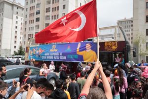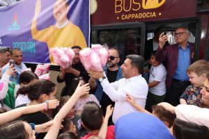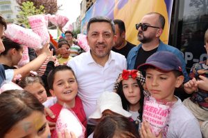 Belediye Başkanı Rasim Arı, daha sonra gün dolayısıyla özel olarak hazırlanan 23 Nisan Otobüsü ile mahalleleri turladı.