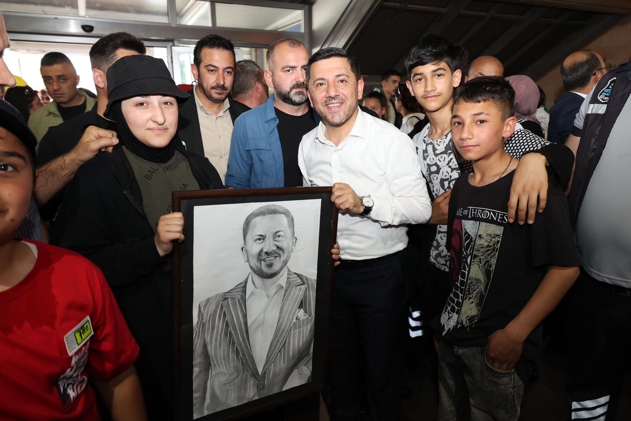 Kendi kullandığı otobüs ile gittiği mahallelerde büyük bir coşku ile karşılanan Arı, burada da çocuklara hediyeler dağıttı.