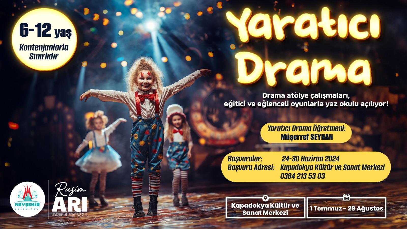 Nevşehir Belediyesi Kültür ve Sosyal İşler Müdürlüğü bünyesinde, çocukların yaz döneminde hem yaratıcılıklarını keşfedip hem de sosyal becerilerini geliştirebilmeleri amacıyla Yaratıcı Drama Kursu açılacak. Yaratıcı Drama Öğretmeni Müşerref Seyhan nezaretinde gerçekleşecek olan atölye çalışmaları sırasında çocuklar, farklı karakterlere bürünerek empati yeteneklerini güçlendirecekler ve eğitici ve eğlenceli oyunlarla keyifli bir yaz tatili geçirecekler.