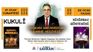 Etkinliklerin ilkinde; Nevşehir Belediyesi çocukları 21 Ocak Cumartesi günü çok sevdikleri çizgi film karakterleri Kukuli ve Arkadaşları ile buluşturacak. Kapadokya Kültür ve Sanat Merkezi’nde 12.00, 14.00 ve 16.00 saatlerinde üç ayrı seans olarak gerçekleştirilecek olan etkinliğe çocuklar ücretsiz olarak katılabilecek. Gösterimler sırasında salona karneleri ile gelen tüm çocuklara kitap hediye edilecek.