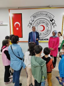 Çocukların bilişsel, fiziksel, sosyal ve kültürel açıdan sağlıklı gelişmeleri, farkındalık, şahsiyet ve bir arada yaşama kültürü; saygı, sevgi, yardımlaşma ve dayanışma duygusu kazanmaları, birbirleriyle ve sosyal çevreyle olumlu ve güçlü iletişim kurmaları, çevresindeki insanları ve olayları anlamaları, sosyal çevre ile sağlıklı etkileşimleri ve kaliteli yaşantıları deneyimlemelerini, yeteneklerini keşfetmeleri ve geliştirmeleri, meslekleri tanıma ve kariyer planlamaları, kendileri ve toplum için faydalı bireyler olmaları hedefiyle yürütülen “Değerler Eğitimi” kapsamında çocuklarla Nevşehir Kızılay Şubesi ve Kan Merkezini ziyaret etti.