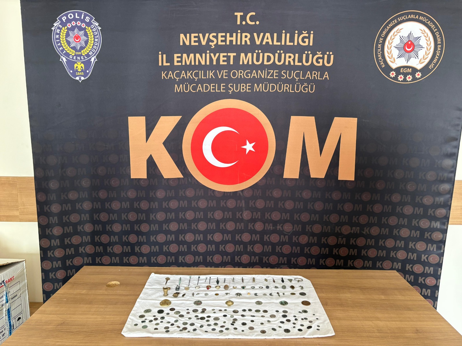 Nevşehir İl Emniyet Müdürlüğü KOM Şube Müdürlüğünce yapılan çalışmalar neticesinde çok sayıda tarihi eser ele geçirildi.