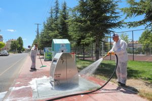 Daha temiz ve sağlıklı bir Nevşehir için çalışmalarını sürdüren Nevşehir Belediyesi, mahallelerdeki yeraltı ve yerüstü çöp konteynerlerini kötü koku ve bakterilere karşı düzenli olarak dezenfekte ediyor.