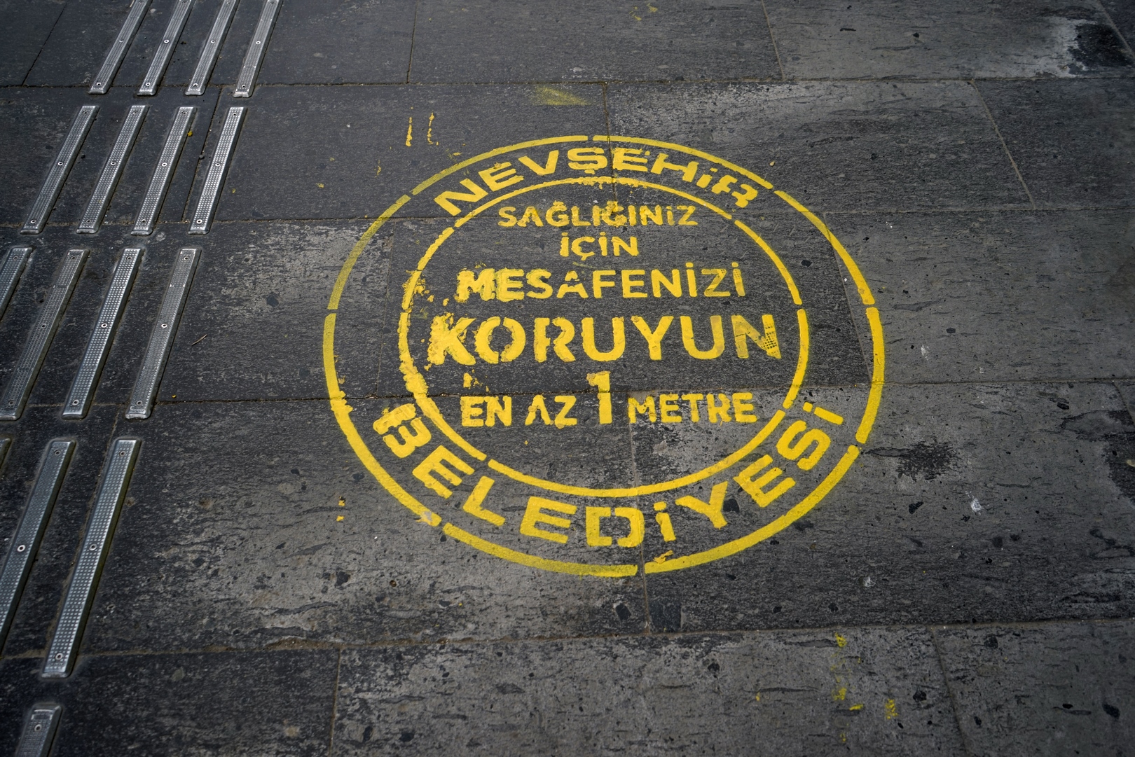 Kaldırımlarda ve Banka önlerinde sosyal mesafe uyarısı