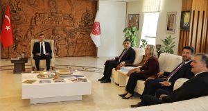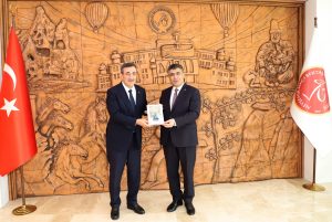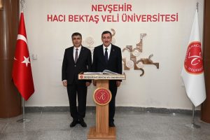 Ziyaretlerinde Yılmaz’ı Rektörlük Makamında ağırlayan NEVÜ Rektörü Prof. Dr. Semih Aktekin üniversite ve gerçekleştirdikleri çalışmalar hakkında kendilerine bilgi verdi.