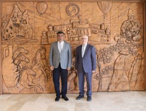 T.C. Cumhurbaşkanlığı Sosyal ve Gençlik Politikaları Kurulu Üyesi Dr. Murat Yılmaz, Nevşehir Hacı Bektaş Veli Üniversitesi (NEVÜ) Rektörü Prof. Dr. Semih Aktekin’i makamında ziyaret etti.