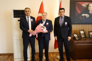 Vergi Haftası etkinlikleri kapsamında Defterdar Sezer Sarı ve Personel Müdürü Ayhan Mert, M. Arif Parmaksız’ı makamında ziyaret etti.