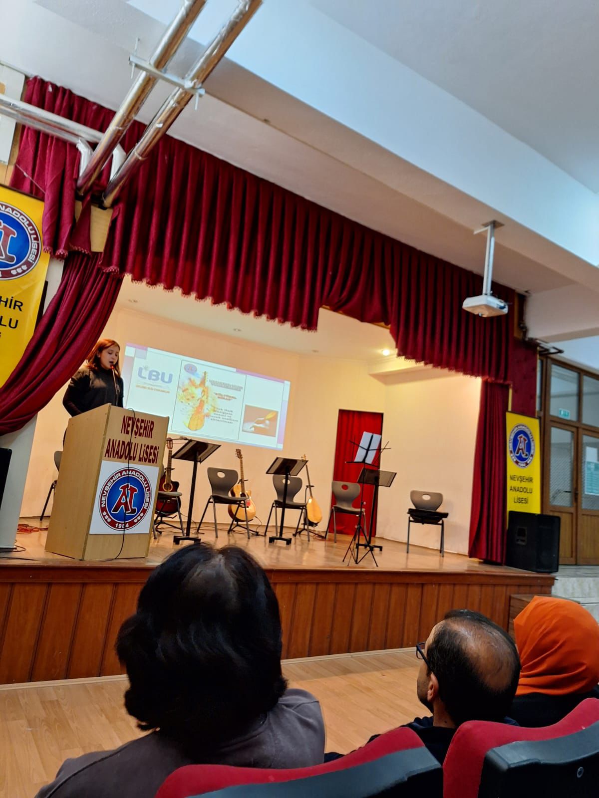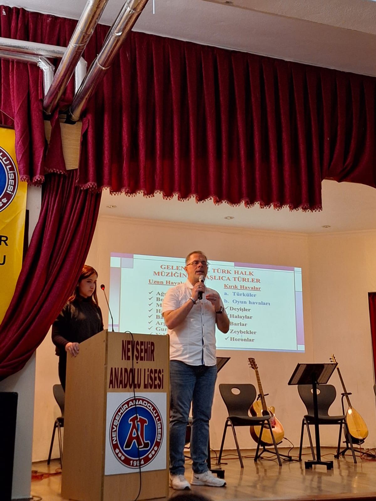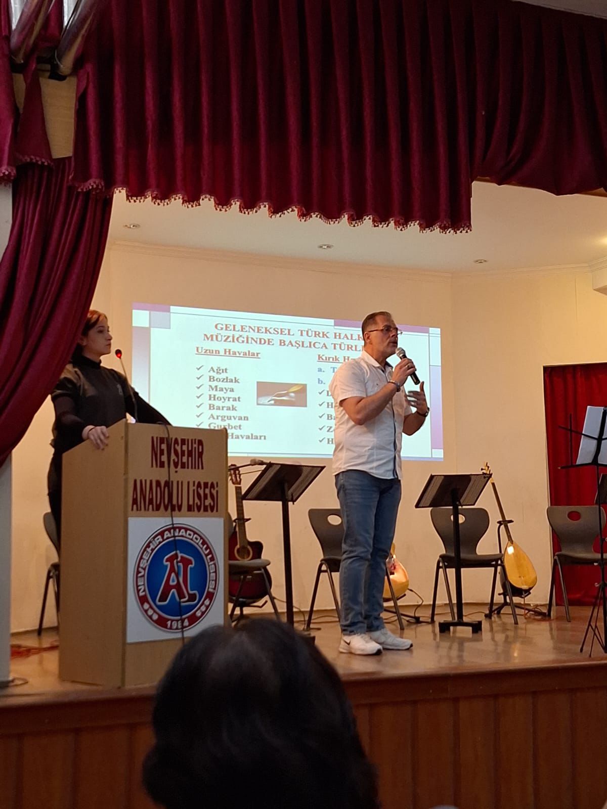 Bu kapsamda Nevşehir Anadolu Lisemizde “Bilim Uygulamaları” Kültürel Miras Temalı, Türk Halk Müziğimizin önemi, özellikleri ve gelecek nesillere aktarılması ile ilgili bir sunum yapıldı. Nevşehir Anadolu Lisesi ile Avanos Özkonak Anadolu Lisesi öğrencilerinin katılımıyla gerçekleşen bu proje çalışmasında, “Değerlerimiz-Türkülerimiz” başlıklı sunumun ardından uzun hava ve kırık hava türkülerinden oluşan bir konserle tamamlandı.