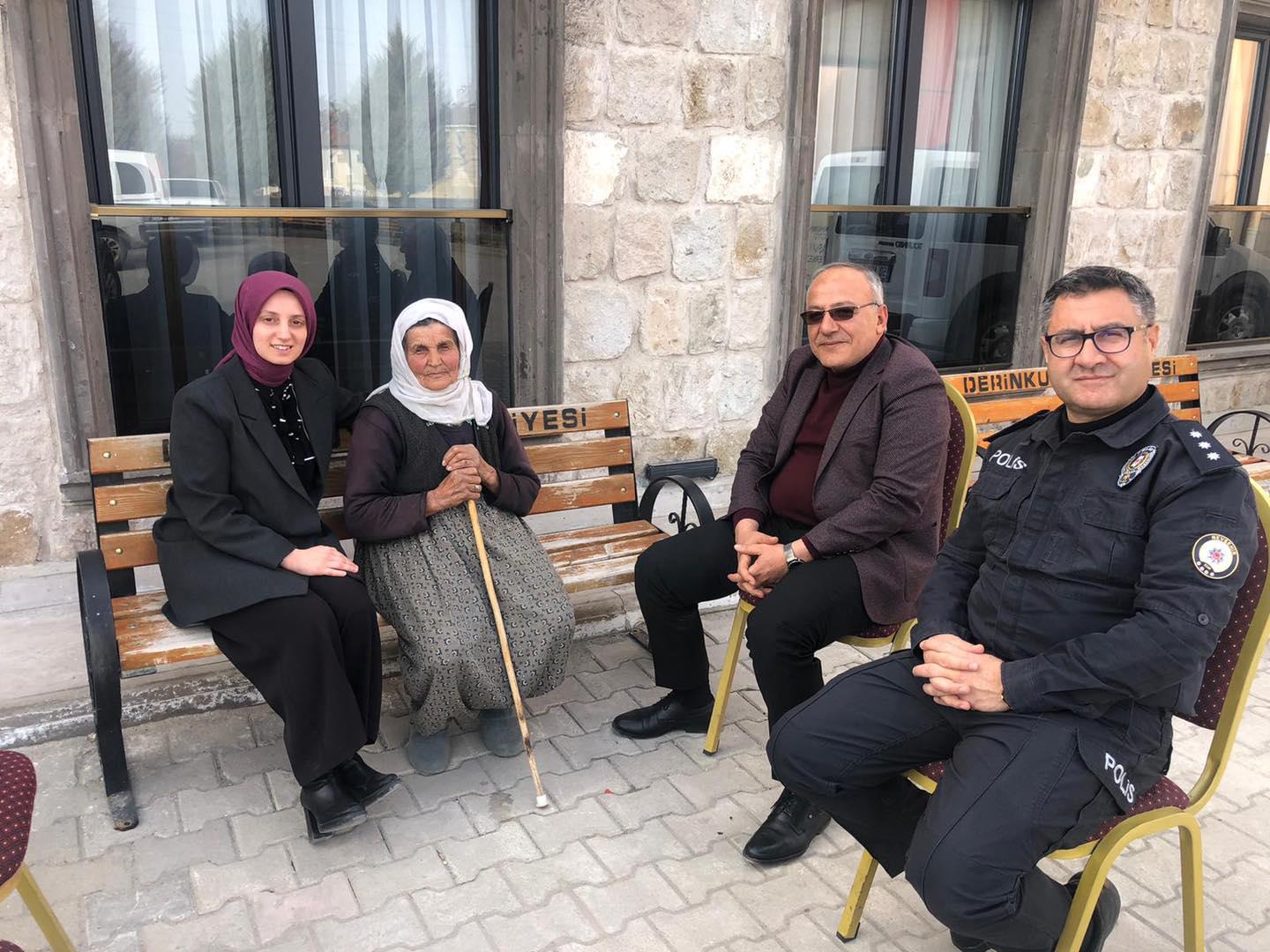 Derinkuyu ilçe Kaymakamı ve Belediye Başkanı depremzedelere yorgan bağışı ile dikkatleri üzerine çeken Nadire Nine’nin konuğu oldular.