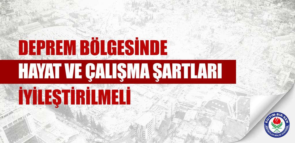 Eğitim-Bir-Sen Nevşehir Şube başkanlığından yapılan açıklamada deprem bölgesinde hayatın ve çalışma şartlarının hızla iyileştirilmesi gerektiğine dikkat çekildi.
