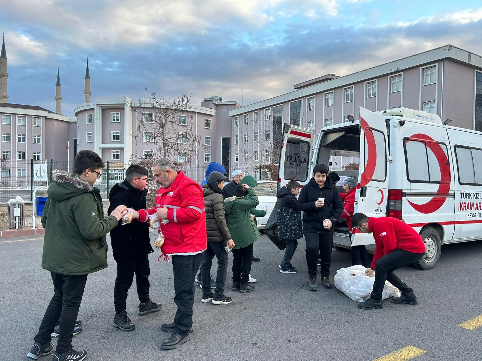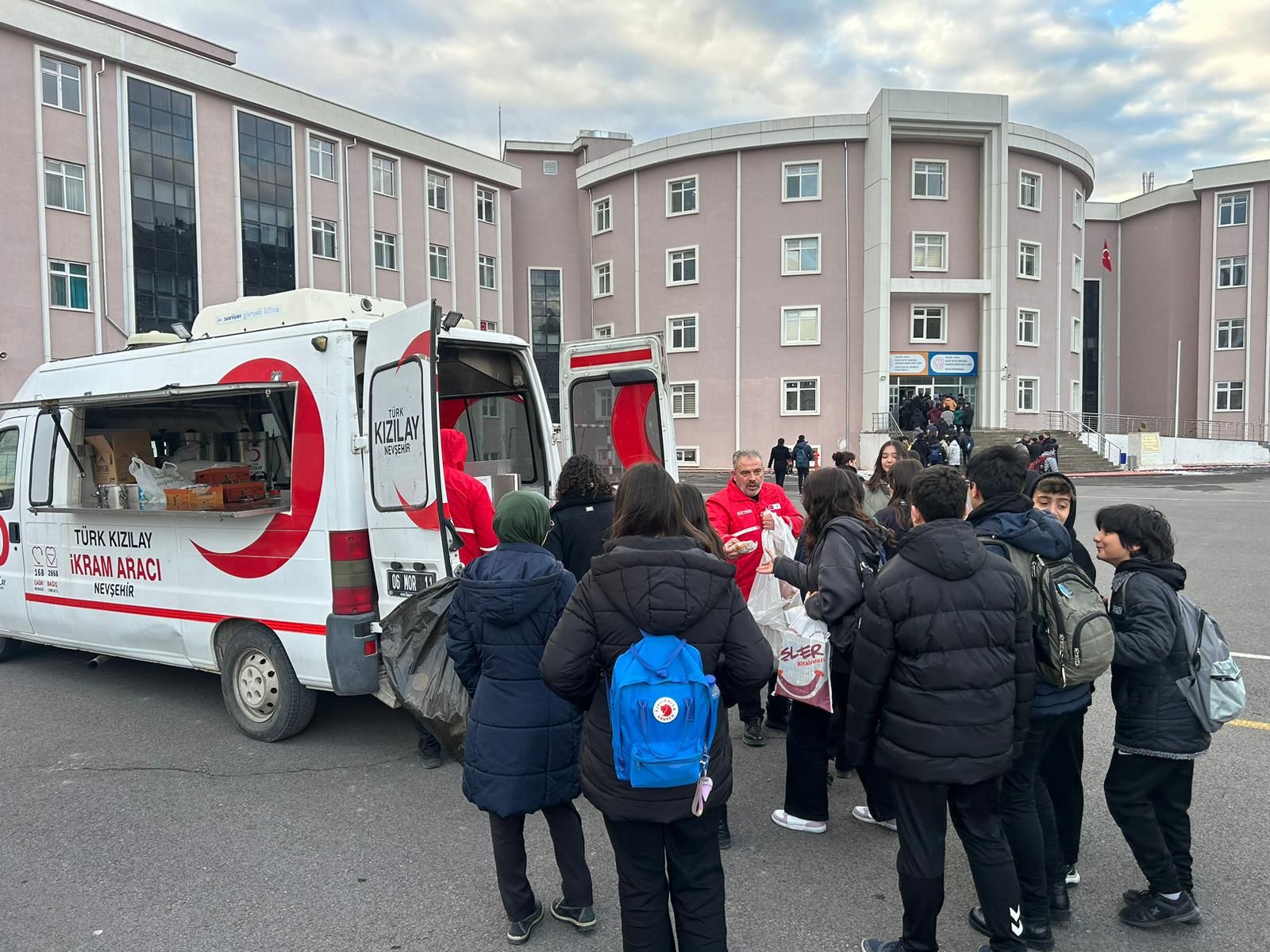 Kızılay’dan Depremde Hayatını kaybedenlerin anısına çorba ikramı yapıldı. Türk Kızılay Nevşehir İl Merkezi Başkanı Ercan CİVELEK’in katılımı ile Kızılay gönüllüleri tarafından Asrın Felaketi olan 6 Şubat depreminde hayatını kaybeden vatandaşların anısına Nevşehir RTE Proje Anadolu İmam Hatip Lisesi ve Diriliş Kız İmam Hatip Lisesinde okuyan öğrencilere çorba ,ekmek ve su dağıtımı yapıldı.