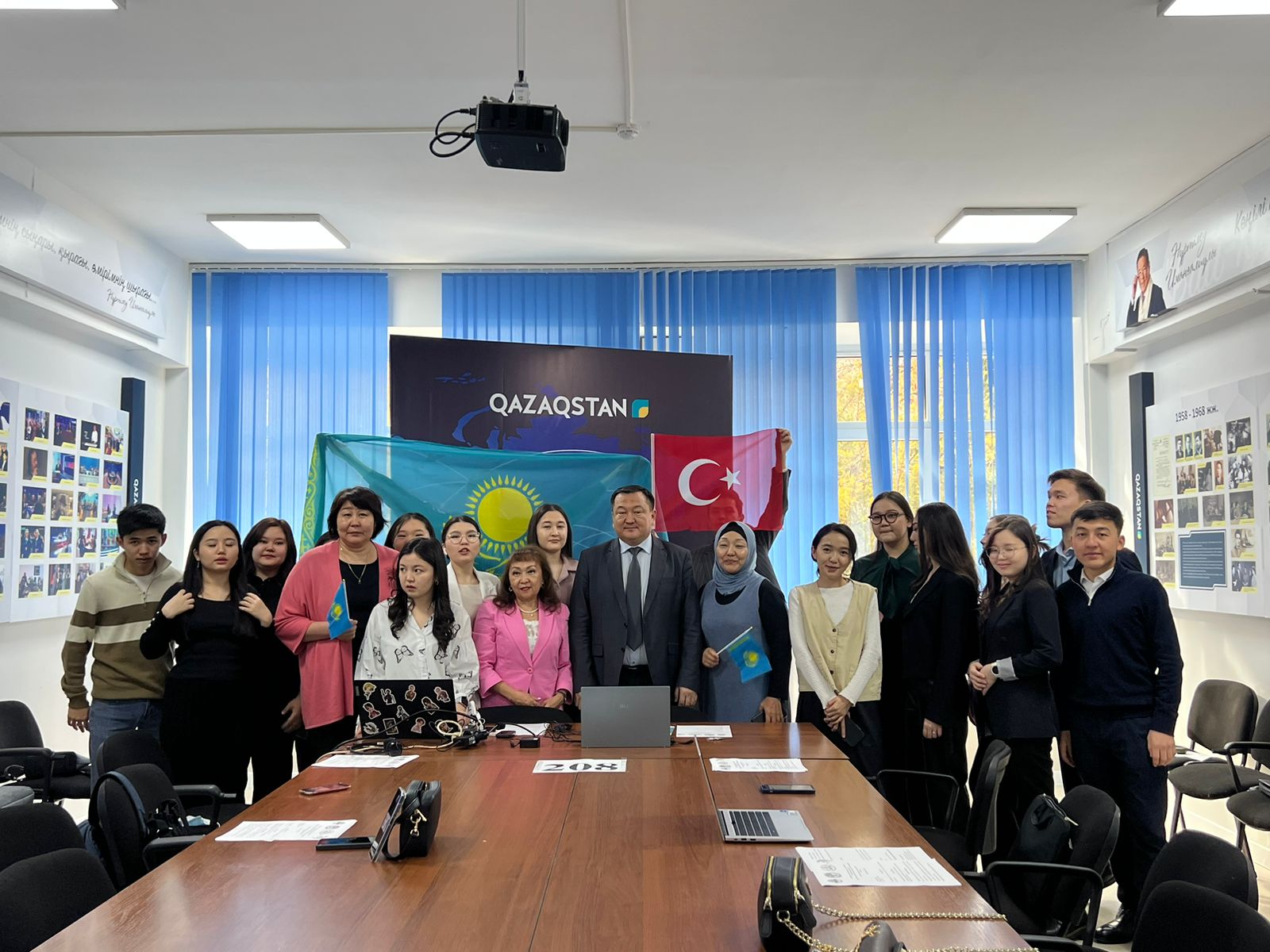 Bölümünün “Doğu Dünyası” Öğrenci kulübü ve Türk Dünyası Gazeteciler Federasyonu tarafından düzenlenen «Depremin sonuçları» konusunda teleköprü yapıldı. Etkinliğin asıl amacı, kardeş Türk halkına ve diğer gazetecilere başsağlığı ve ahlaki desteklerini ifade ettiler. Etkinliğe Gazetecilik Fakültesi Dekanı Nurzhan Kuantaiuly, onur konukları Yılmaz Karaca, Türkiye Gazeteciler Federasyonu Genel Başkanı (Eskişehir. Türkiye), Menderes Demir, Türk Dünyası Gazeteciler Federasyonu Genel Başkanı, Türk Dünyası Belgesel Film Festivali Organizasyon Komitesi Başkanı (Ankara. Türkiye), Bayram Ekici, Türkiye Gazeteciler Federasyonu Genel Sekreteri, Türk Dünyası Gazeteciler Federasyonu Genel Sekreteri, Kapadokya «Muşkara Haber» Gazetesi İmtiyaz Sahibi, Serdar Akyol, İnternet Medya ve İletişim Yayınları Derneği Genel Başkanı, «Sonnokta Haber», «Koridor» Gazetesinin genel yayın yönetmeni (Ankara.Türkiye) katıldı.