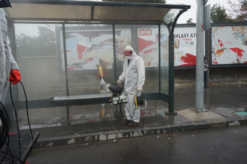 Temizlik İşleri Müdürlüğü bünyesinde bu amaçla oluşturulan ekipler, vatandaşların yoğun olarak kullandıkları ortak alanlar dışında, özel halk otobüsleri ve durakları, okullar, taksi durakları ve ticari taksiler, öğrenci servisleri ve kamu binalarında titiz bir çalışma gerçekleştirdi.