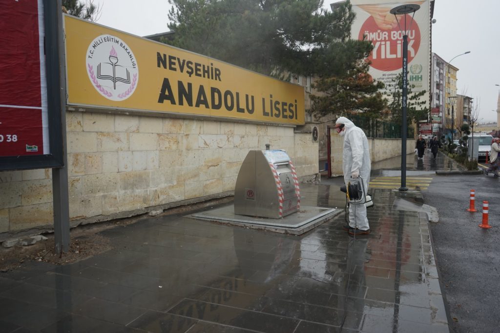 Koronavirüsü tehdidine karşı, yoğun dezenfekte çalışması başlatan Nevşehir Belediyesi, düzenli aralıklarla ilaçlama çalışmalarını sürdürüyor.