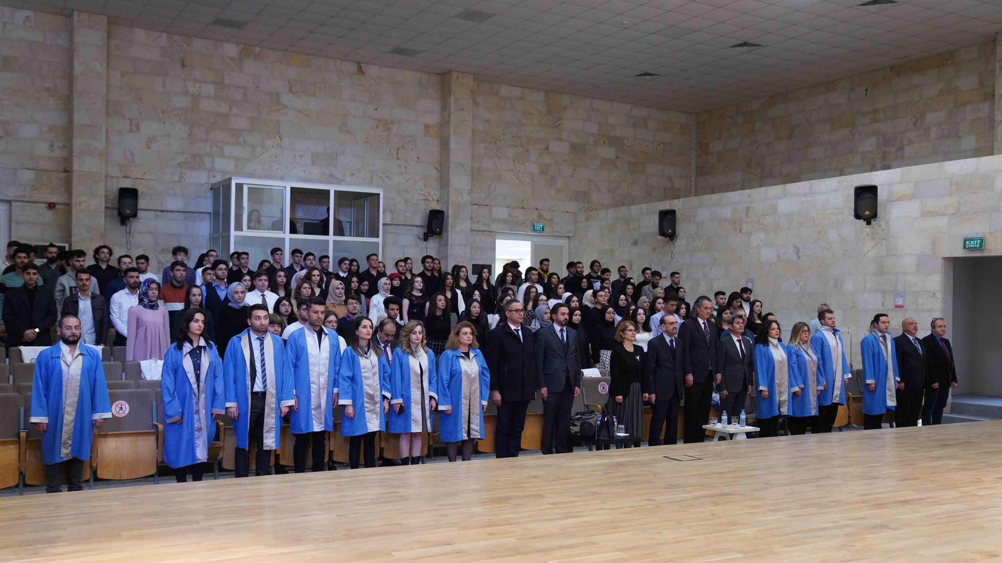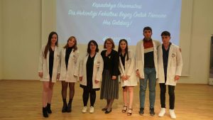 Rektör Yardımcımız Prof. Dr. İlhan Öztürk, “Bu yıl öğrencilerimiz ilk defa beyaz önlük giyecekler ve mesleklerine başlangıç yapacaklar. Beyaz önlük benim aklımda şeffaflığı, dürüstlüğü, doğruluğu, parlaklığı ve bütün güzellikleri temsil ediyor. Toplumumuzun beyaz önlüklülerden yani hekimlerden, diş hekimlerinden beklentisi, talepleri üst düzeydedir. Bu talepler hiçbir zaman eksilmez, üstelik artarak devam eder ve süreklidir. Bu da hekimlere düşen görevi daha da zorlaştırır. Bu beklentiye cevap vermek, bu beklentiyi karşılamak, haklı talepleri karşılamak oldukça zordur. Bu zorluklar sizi yıldırmasın, umutsuzluğa sevk etmesin. İnanıyorum giydiğiniz beyaz önlük gibi temiz, saf ve beyazın bitmez ferahlığı gibi hizmetler üretmek, kendinizi en iyi şekilde yetiştirmek için gayret göstereceksiniz. Bu konuda Üniversitemiz bütün imkanları, donanımları ve öğretim görevlileriyle sizin yanınızdadır ve hizmetinizdedir. Her zaman Üniversitemiz sizin için bir yuva olma özelliğini sürdürecektir. Sizlere üstün başarılar ve parlak gelecek diliyorum, bahtınız ve ufkunuz açık olsun” diyerek sözlerini sonlandırdı.