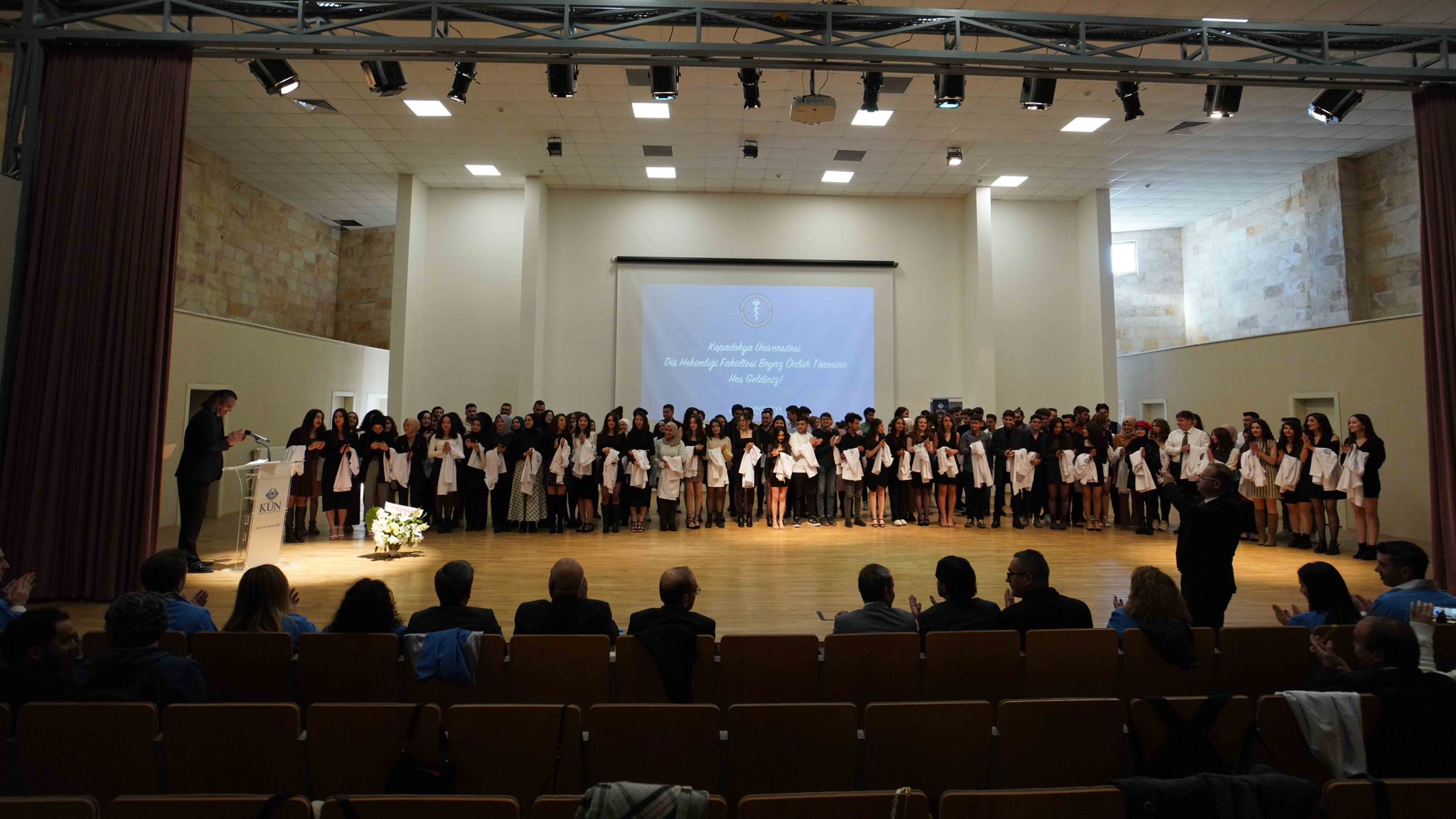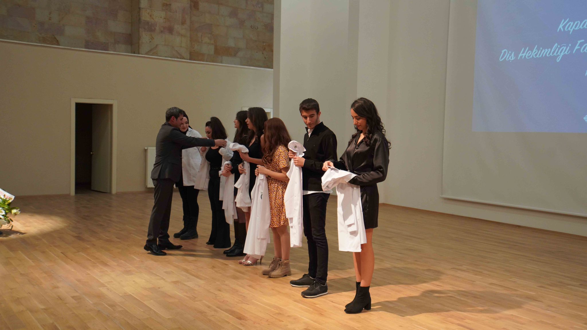 Üniversitemiz Diş Hekimliği Fakültesi 1’inci sınıf öğrencileri için “Beyaz Önlük Giyme Töreni” düzenlendi. Uçhisar Sanat Yerleşkesi’ndeki törende, öğrencilere beyaz önlükleri, protokol ve Diş Hekimliği Fakültesi öğretim üyelerimiz tarafından giydirildi.