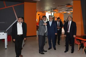 Diyanet İşleri Başkan Yardımcısı Doç. Dr. Burhan İşliyen konferans öncesi NEVÜ Rektörü Prof. Dr. Semih Aktekin eşliğinde Sezai Karakoç Öğrenci Yaşam Merkezi’nde yer alan ‘TDV Kitap Satış Ofisi’ni, Hoca Ahmed Yesevi Kütüphanesi ve içerisinde Diyanet İşleri Başkanlığına ait yayınlarının da yer aldığı ‘Diyanet Genç Ofis’ ile Nevşehir Gençlik ve Spor İl Müdürlüğü iş birliğinde öğrencilerin yararlanmaları için üniversiteye kazandırılan ‘Genç Ofis’i ziyaret ederek incelemelerde bulundu.