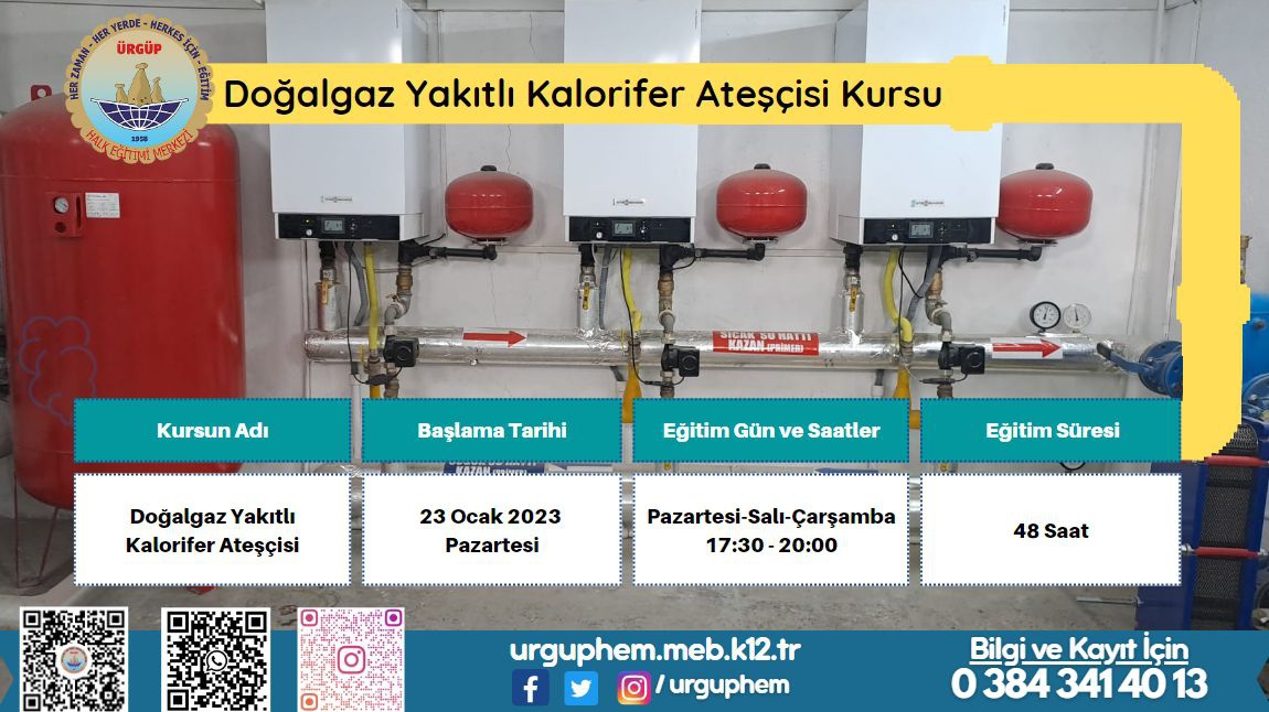 Ürgüp halk eğitim merkezinde doğalgaz yakıtlı kalorifer ateşçisi kurusu açılacak.