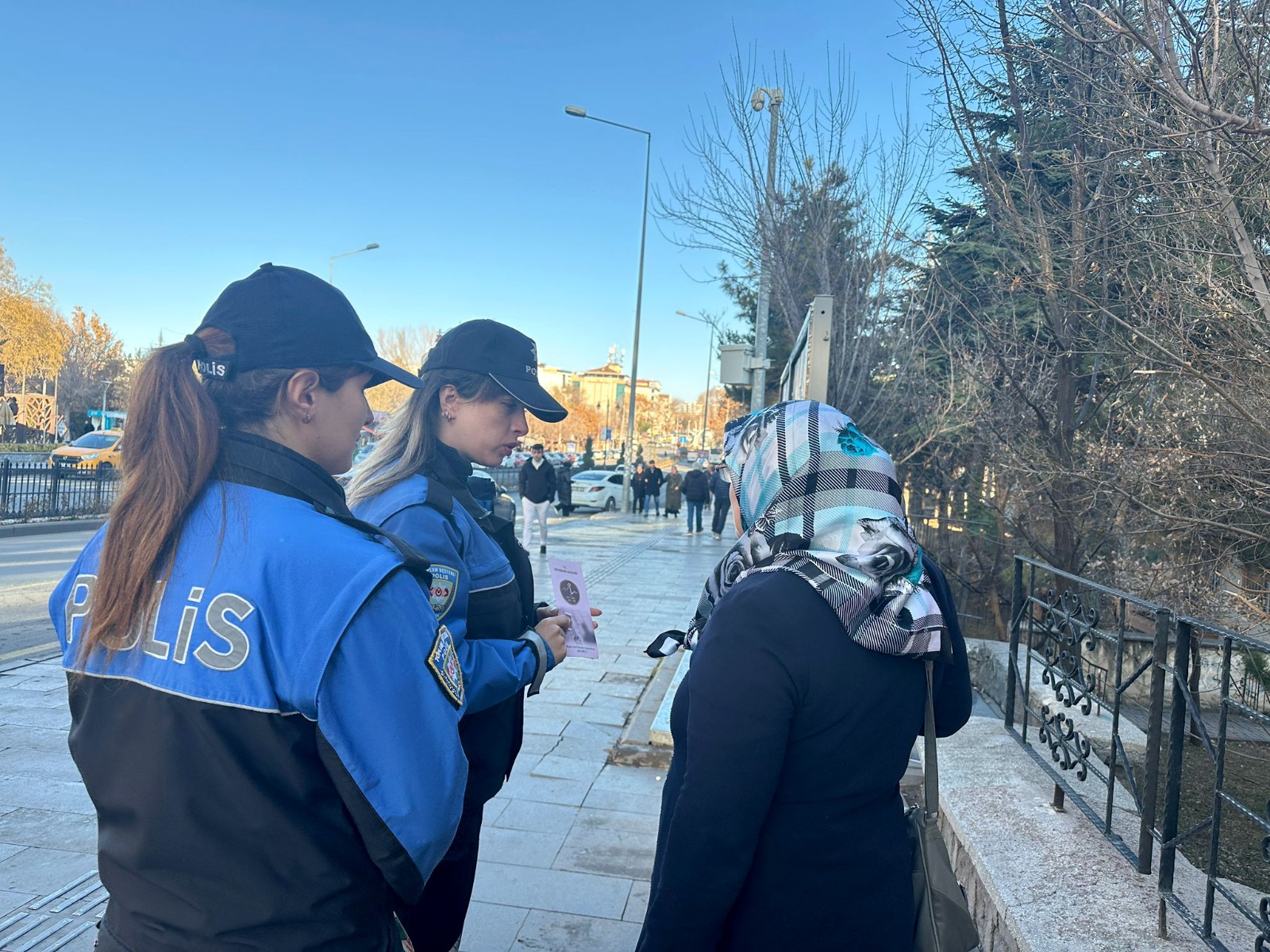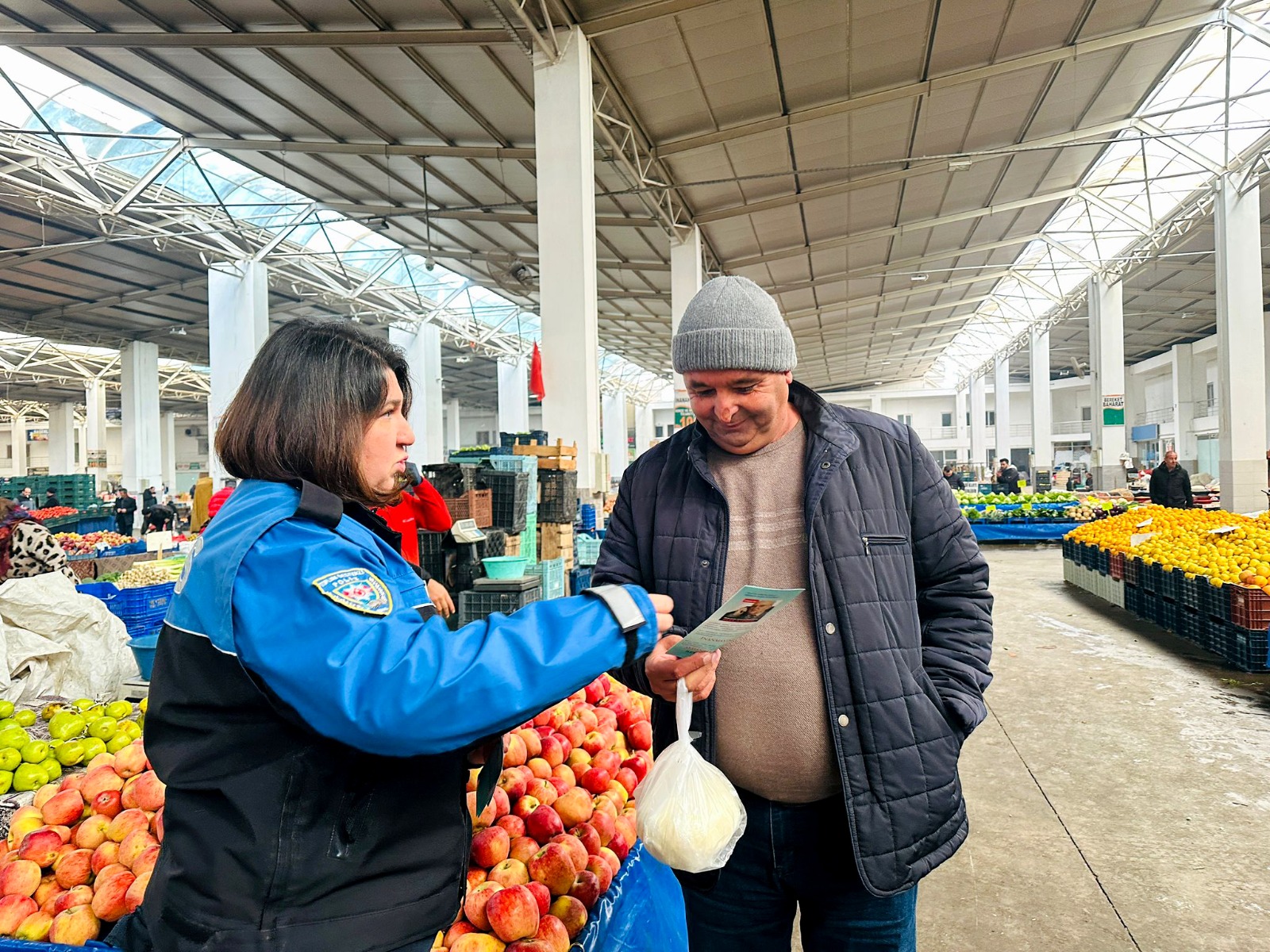 Toplum Destekli Polislik Şube Müdürlüğü tarafından umuma açık yerler ziyaret kapsamında halkın yoğun olarak bulunduğu pazar yeri, cadde ve sokaklarda vatandaşların “Dolandırıcılık” konusunda dikkatli ve duyarlı olmaları ve “KADES” uygulaması ile ilgili telefona kurulumu ve kullanımı konusunda gerekli bilgilendirme yapılarak broşür dağıtıldı.