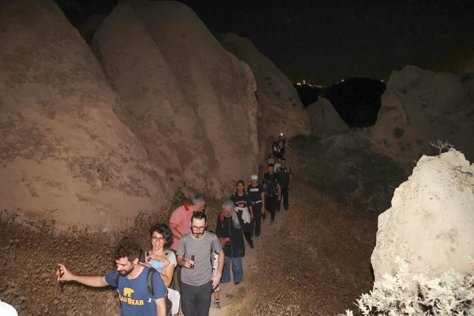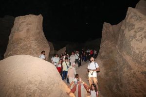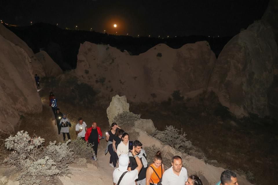 Yürüyüş sırasında dolunay, gökyüzündeki tüm güzelliğiyle Kapadokya topraklarını selamlarken Kapadokya’nın eşsiz güzellikteki Kızılçukur Vadisi’ni keşfeden katılımcılara belediye görevlileri tarafından yürüyüş sonunda çeşitli ikramlarda bulunuldu.