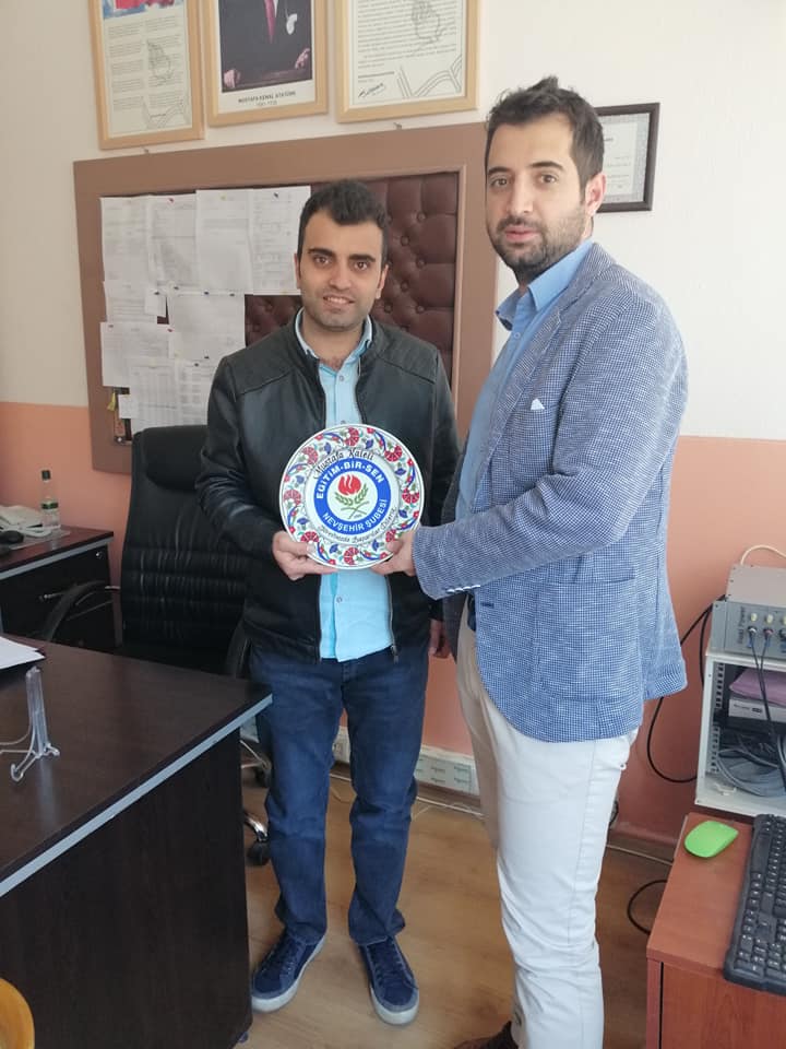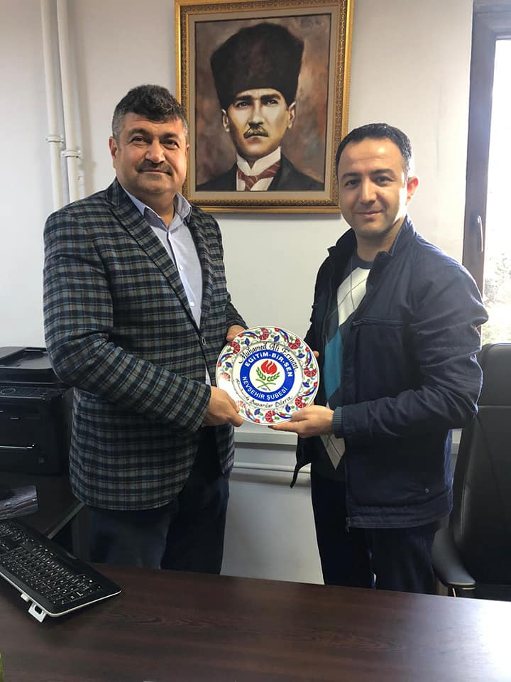 Eğitim-Bir-Sen Nevşehir Şube Başkanlığı yönetim kurulu üyeleri görevlerine yeni atanan okul yöneticilerine hayırlı olsun ziyaretinde bulunuyor.