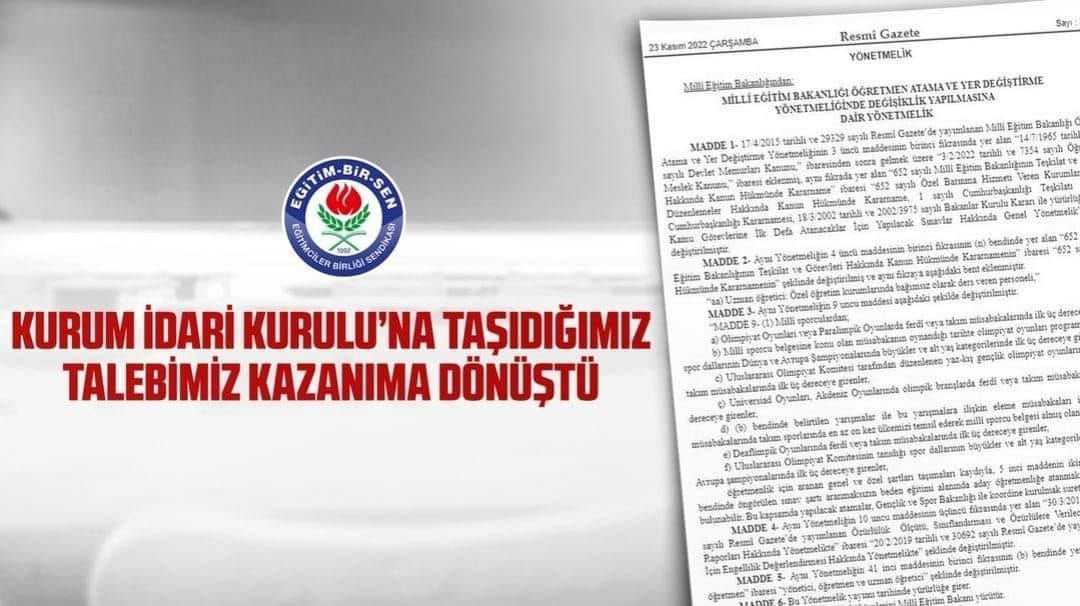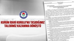 Eğitim-Bir-Sen Kurum İdari Kurulu’na taşıdığı talebi ile eğitimciler adına yeni bir kazanım daha sağladı.
