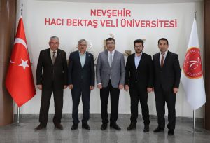 Eğitim-Bir-Sen Genel Sekreteri Latif Selvi beraberinde Eğitim-Bir-Sen Nevşehir Şube Başkanı Mustafa Çiftci, NEVÜ Temsilcisi Mustafa Seçen ve Bünyamin Ergen ile birlikte, NEVÜ Rektörü Prof. Dr. Semih Aktekin’i makamında ziyaret etti.