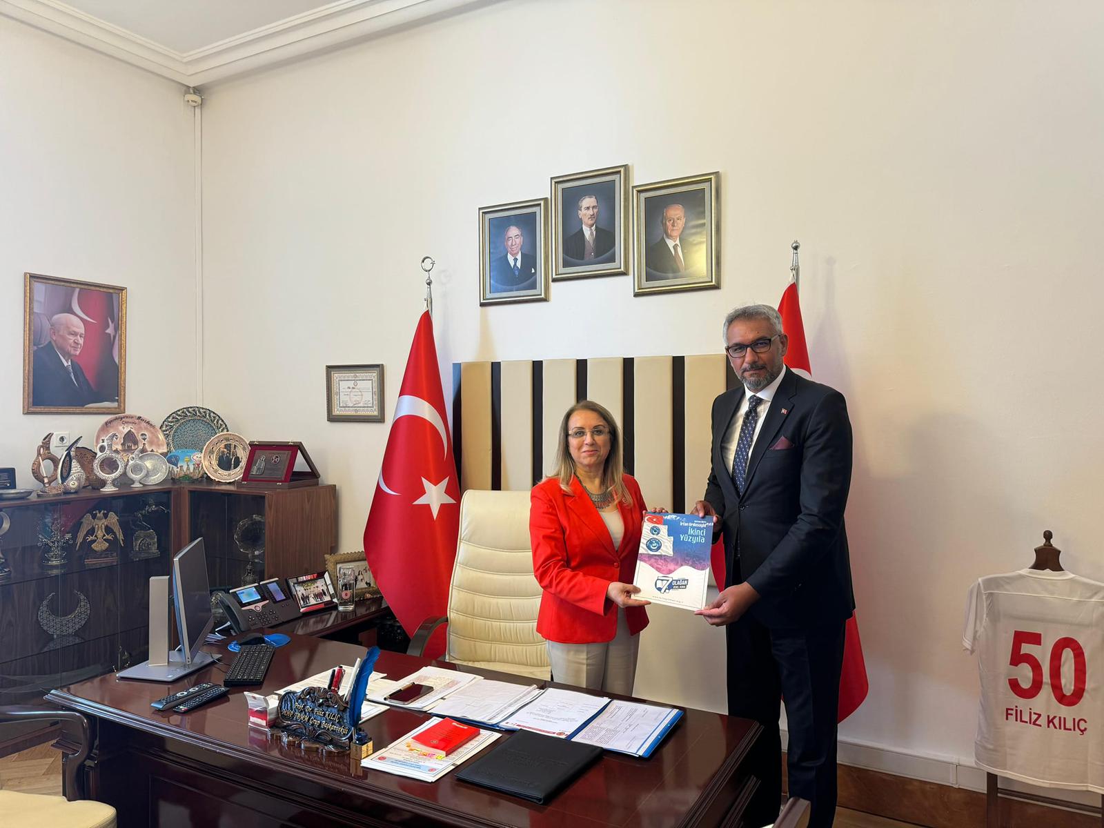Nevşehir Milletvekili Prof. Dr. Filiz Kılıç’ın MHP Grup başkanvekili olmasından dolayı hayırlı olsun ziyaretinde bulunarak Nevşehir’de eğitim çalışanlarının talep ve beklentilerini içeren Nevşehir eğitim raporunu Tes. Nevşehir şube başkanı Tayfur Urgenç sundu.