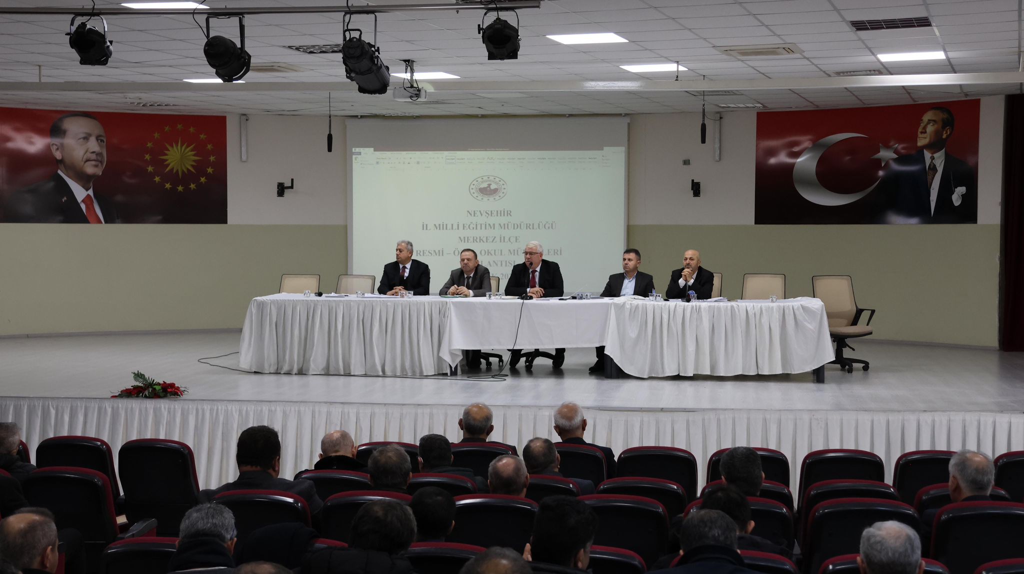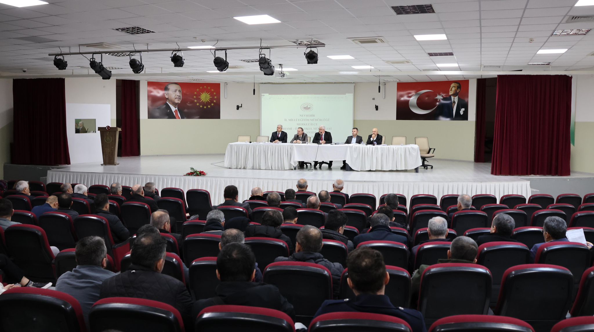 Nevşehir İl Millî Eğitim Müdürü Yusuf Yazıcı başkanlığında, Recep Tayyip Erdoğan Anadolu İmam Hatip Lisesi toplantı salonunda Eğitim Müfettişleri Başkanı, şube müdürleri ve merkez ilçe genelindeki tüm resmi- özel okul müdürlerinin katılımıyla toplantı yapıldı.